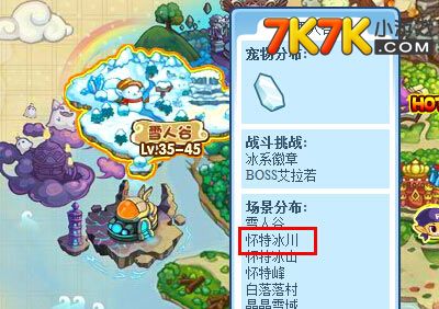 洛克王国怀特冰川在雪人谷场景中哦,通过王国地图就可以直接进入啦!