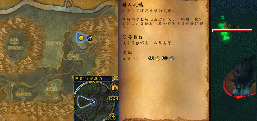 任务过程:从雾牙狼群身上取得6个血污之牙。