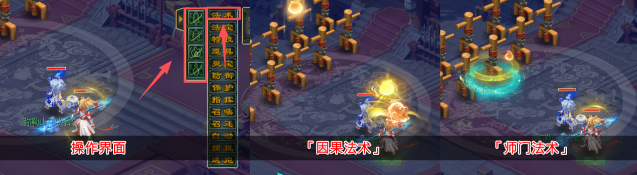 弥勒山有着「因果法术」和「普通法术」两套技能系统,具体介绍如下:
