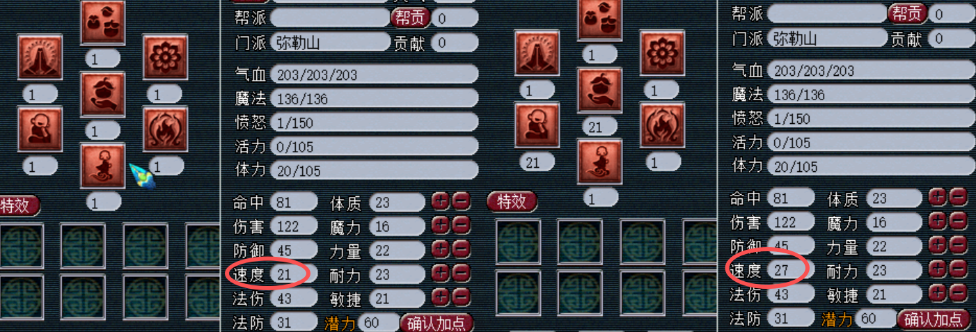 诚然,有少侠会提出疑问,女儿村的「清歌妙舞」亦可提高角色速度,经脉技能「花舞」在全敏加点的情况下,速度加成也会高于弥勒山,那么,为什么说弥勒山依然具备竞争一速的能力呢?