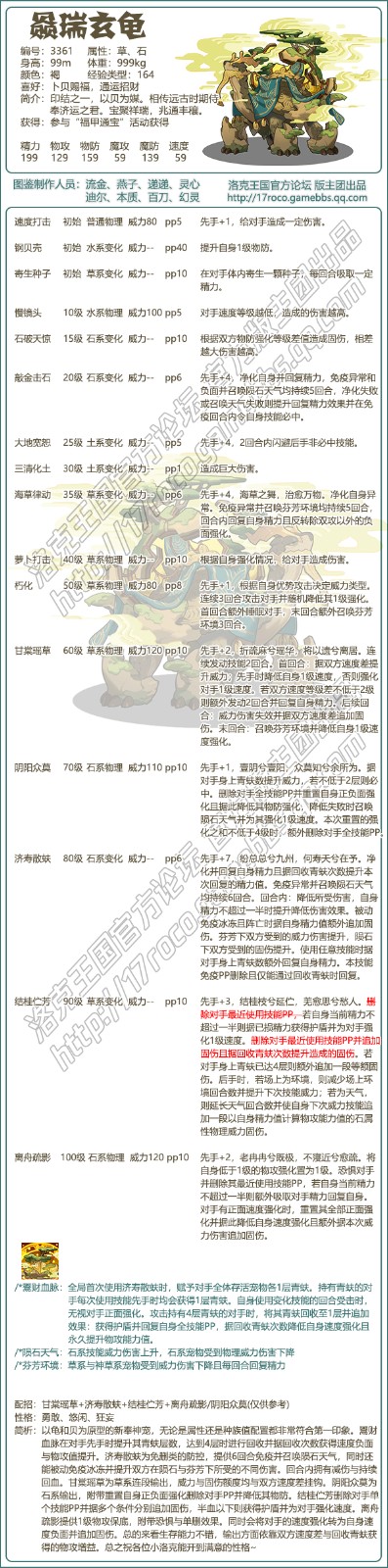 简析:以龟和贝为原型的新奉神宠,无论是属性还是种族值配置都非常符合第一印象。