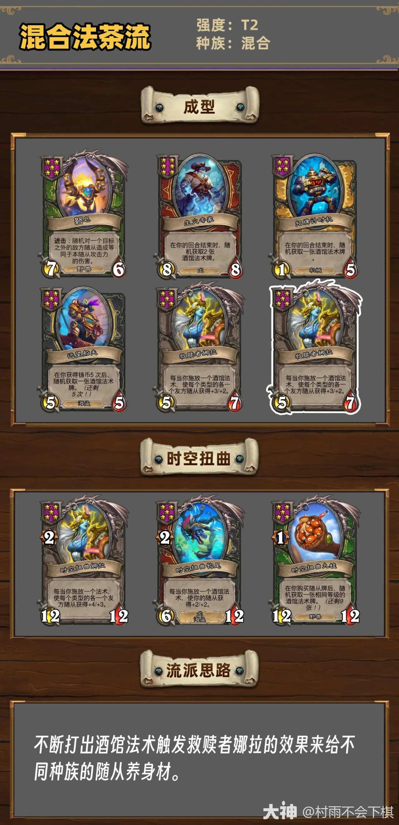 不断打出酒馆法术触发救赎者娜拉的效果来给不同种族的随从养身材。