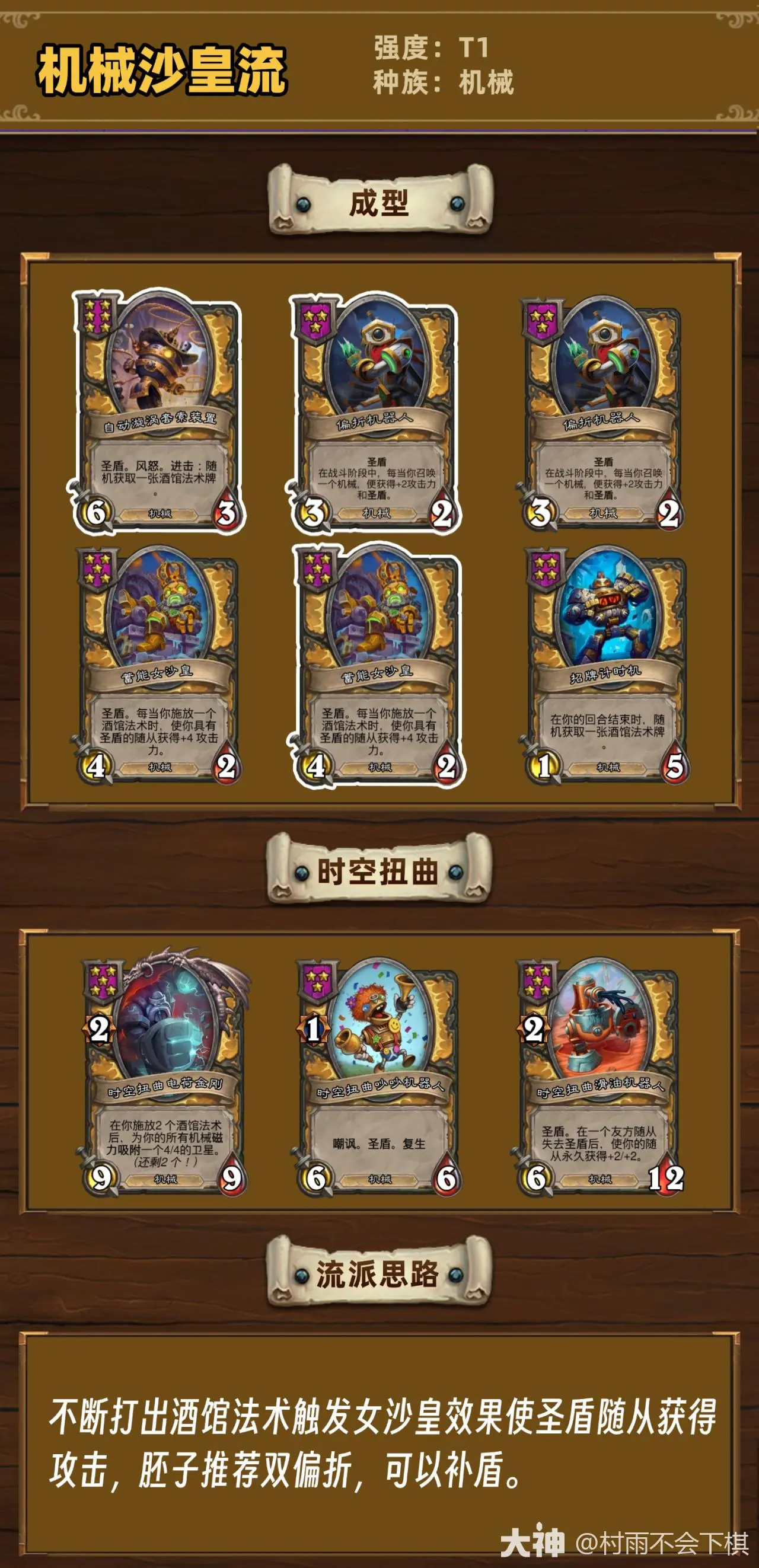不断打出酒馆法术触发女沙皇效果使圣盾随从获得攻击,胚子推荐双偏折,可以补盾。