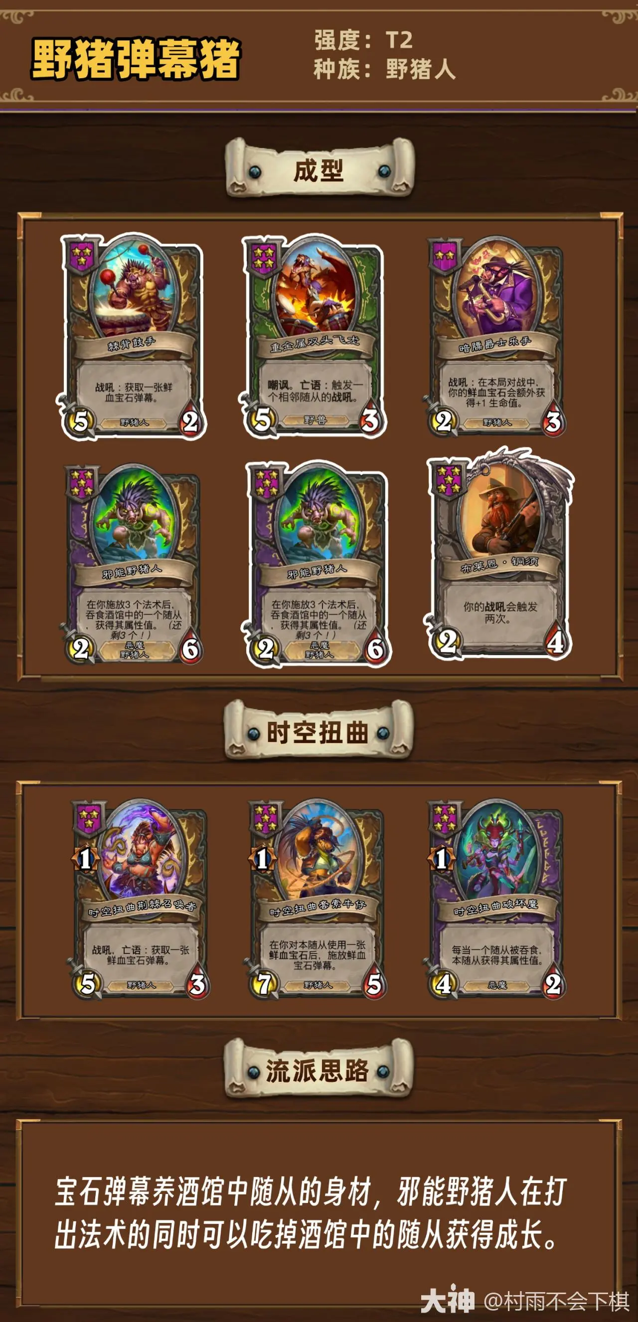 宝石弹幕养酒馆中随从的身材,邪能野猪人在打出法术的同时可以吃掉酒馆中的随从获得成长。