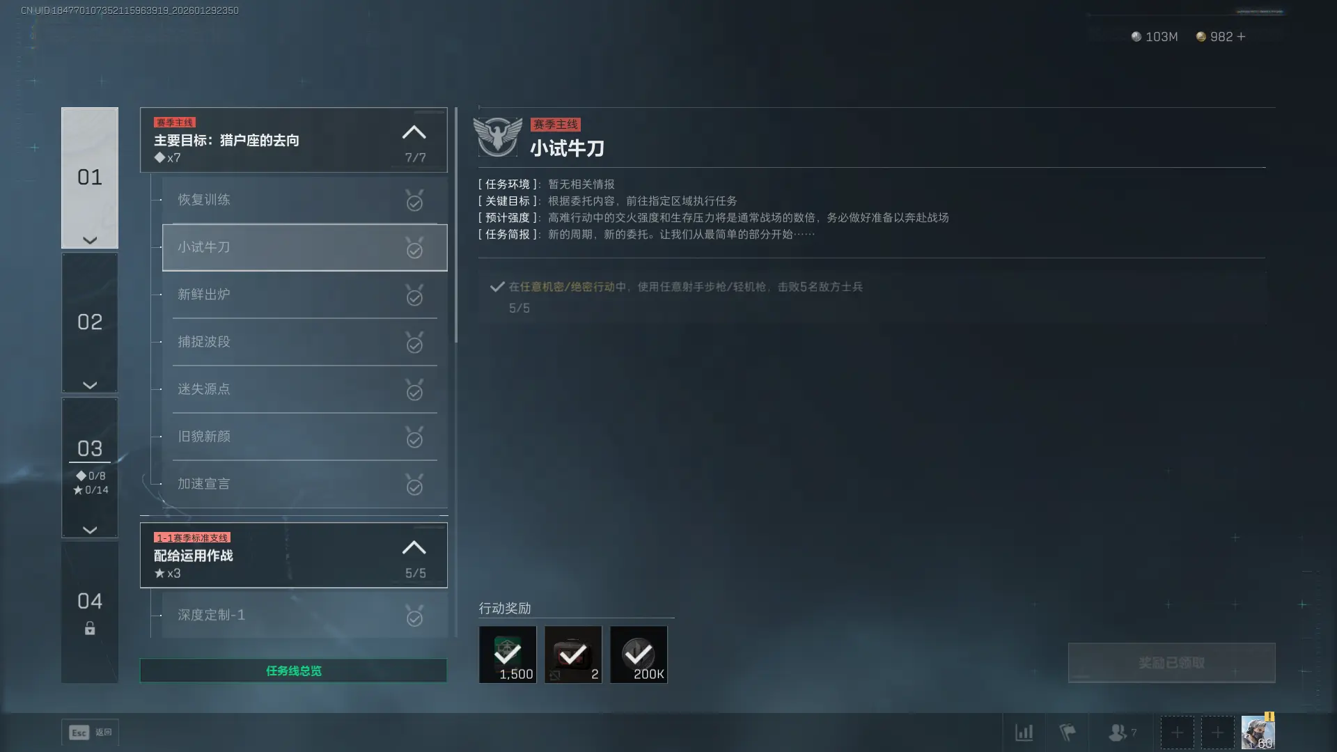 1、任务目标:在任意机密/绝密行动中,使用任意射手步枪/轻机枪,击败5名敌方士兵。