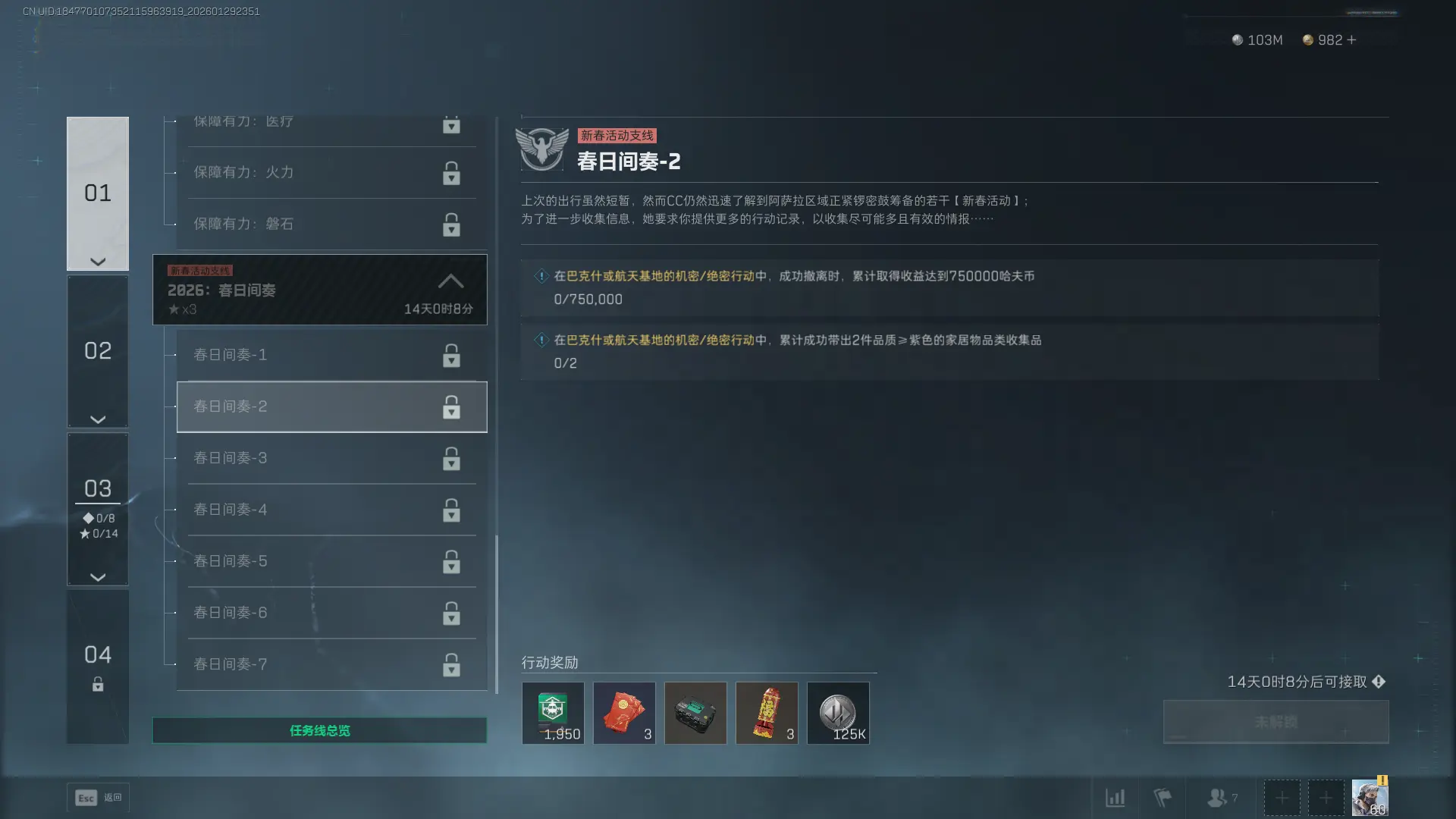4、任务奖励:经验x1950、拼手气红包x1、3x3保险箱1天权限卡x1、好运爆红烟花x3、哈夫币x125000