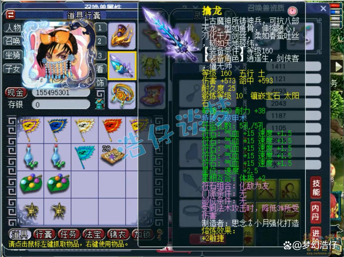 160级破甲术武器,熔炼后耐敏双加60,打了10锻太阳石。