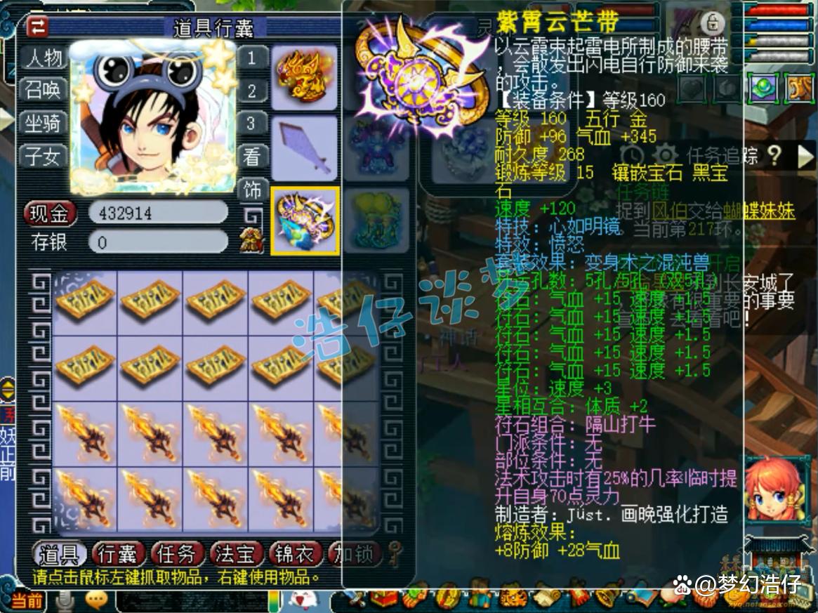 160级愤怒心如明镜混沌兽套腰带,打了15锻黑宝石,心如明镜是一个很好的单挑特技,可以抗封!