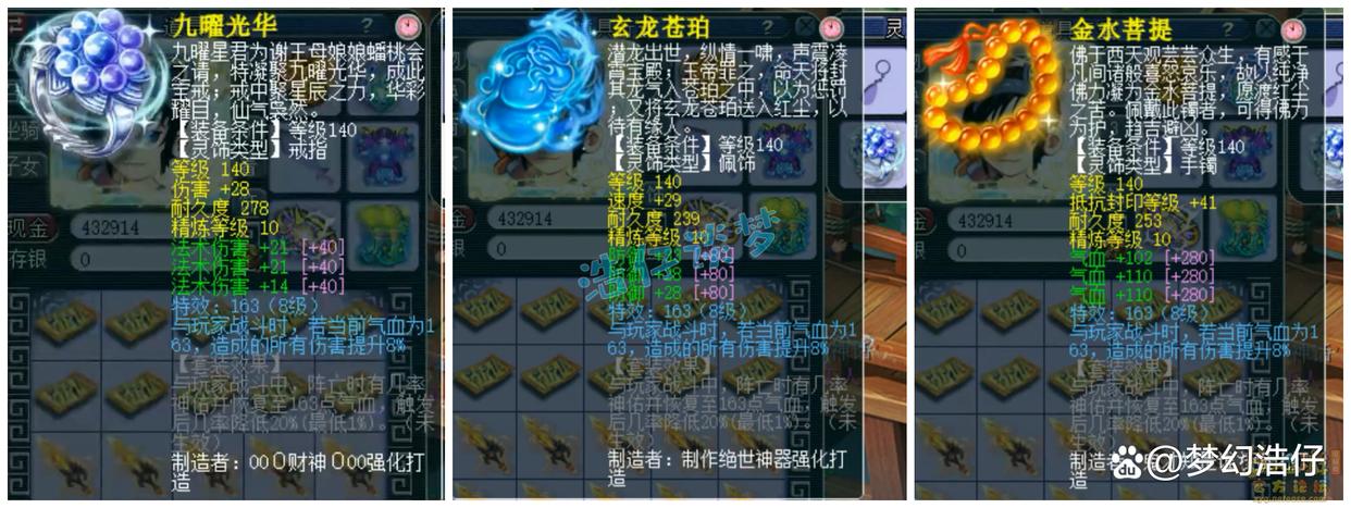 戒指下排三法伤,耳饰没有带在身上,可能是法伤的,也可能是法暴的,毕竟方寸山的经脉可以增加法暴几率,佩饰下排三防御,手镯下排三气血,全部打了10锻星辉石,特效8级163。