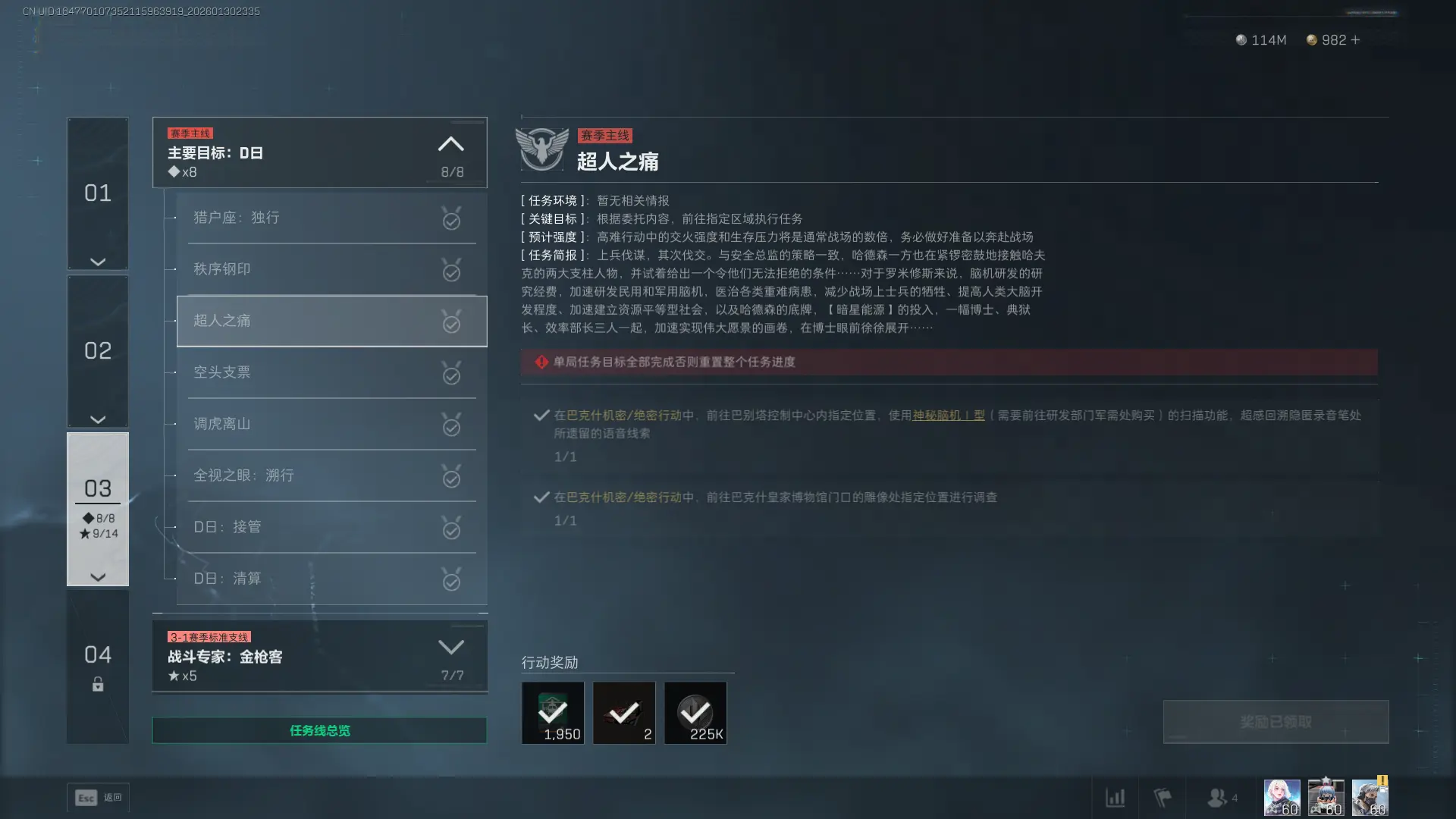 4、任务奖励:经验x1950、高级子弹生产零件x2、哈夫币x225000