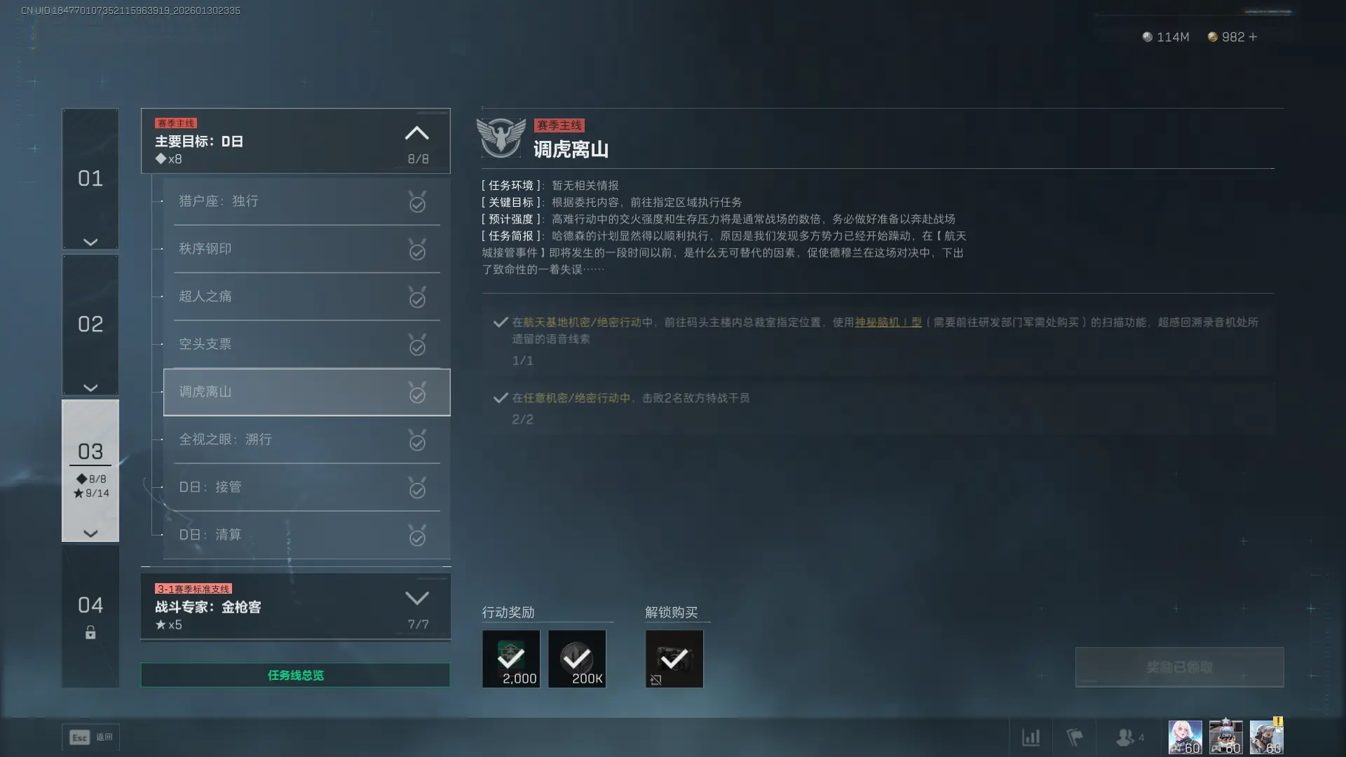 4、任务奖励:经验x2000、哈夫币x200000