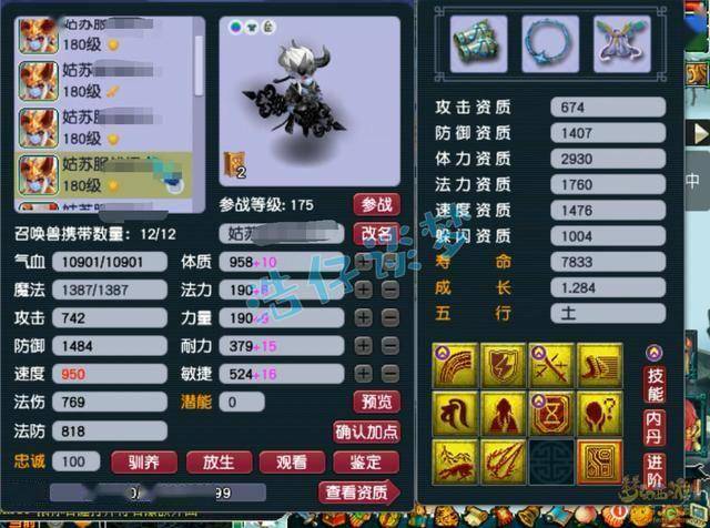 11技能净台法防配速血宠童子,高内丹打的是电魂闪。