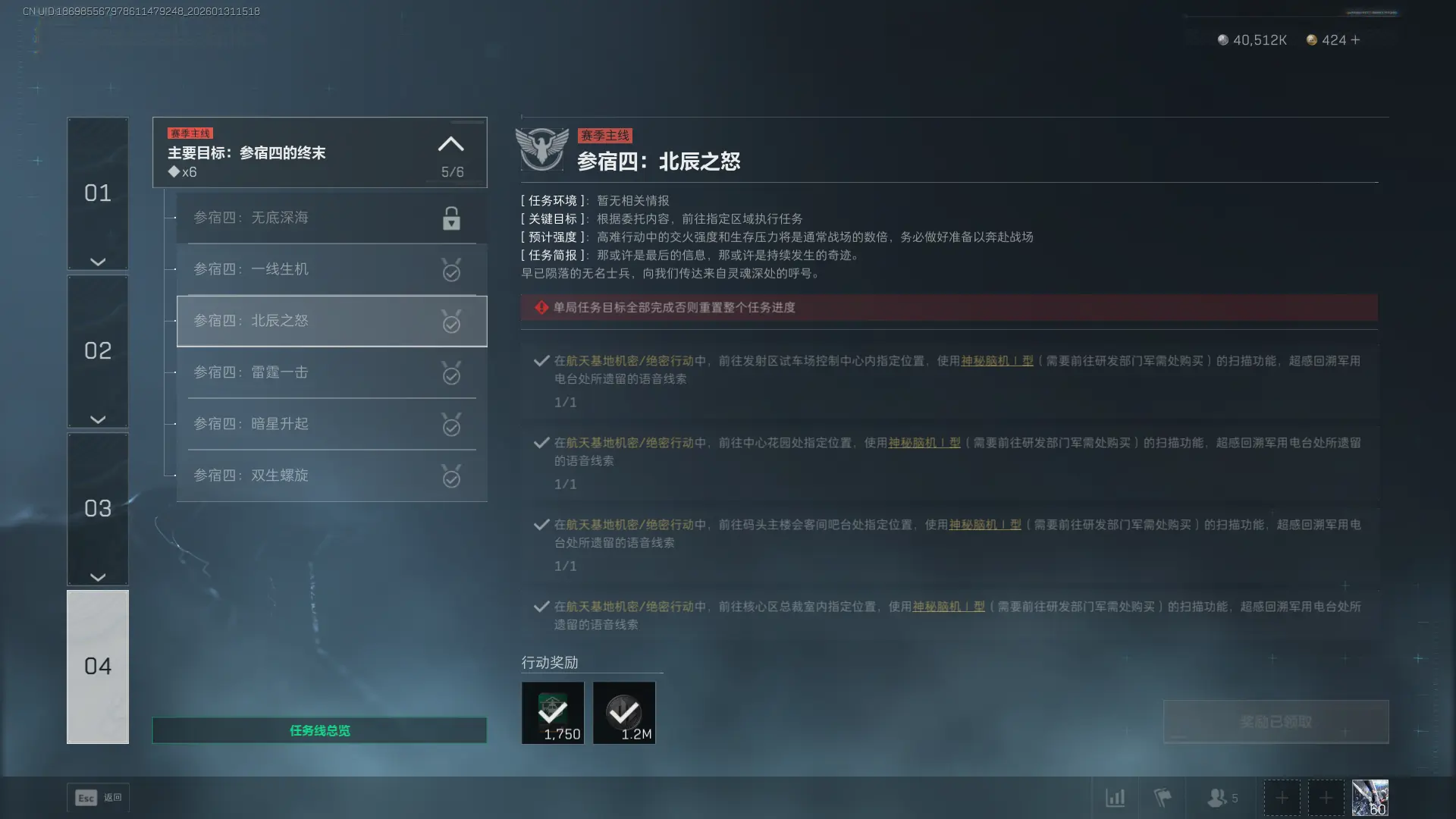 2、任务名称:参宿四:北辰之怒