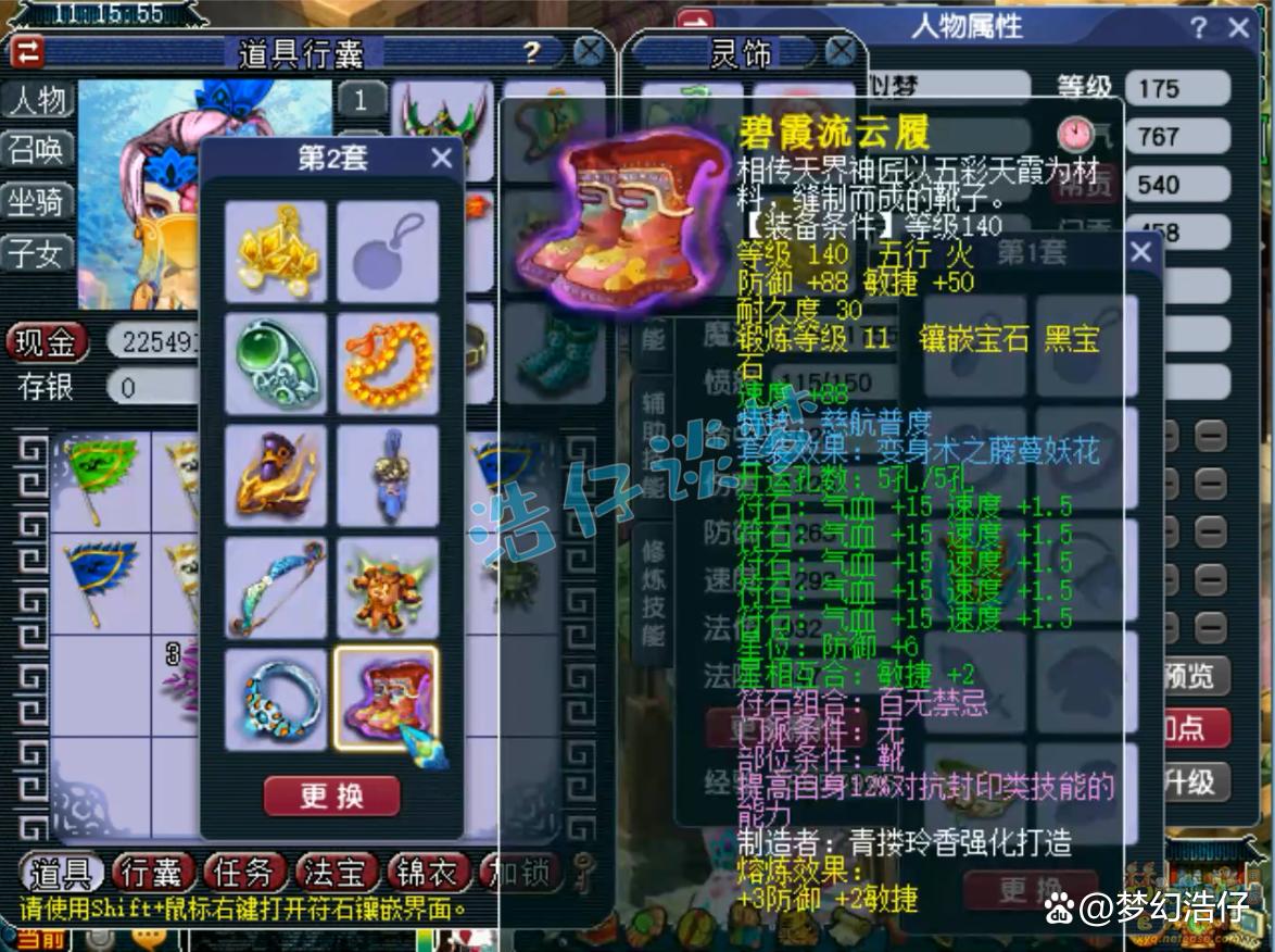 140级带慈航普度的藤蔓妖花套鞋子,打了11锻黑宝石!