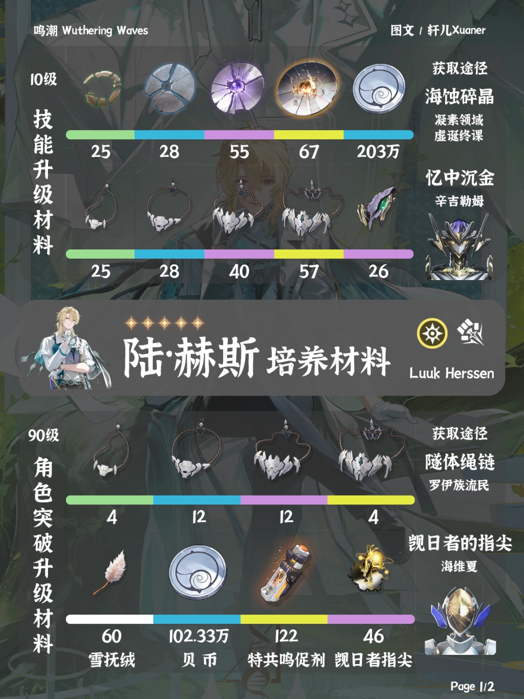 《鸣潮》是一款开放世界动作类游戏,拥有高自由度的战斗玩法和丰富多样的叙事内容。陆赫斯是3.1新版本的角色,也马上就要上线了,那么有不少小伙伴好奇陆赫斯材料要哪些,下面就来告诉大家。