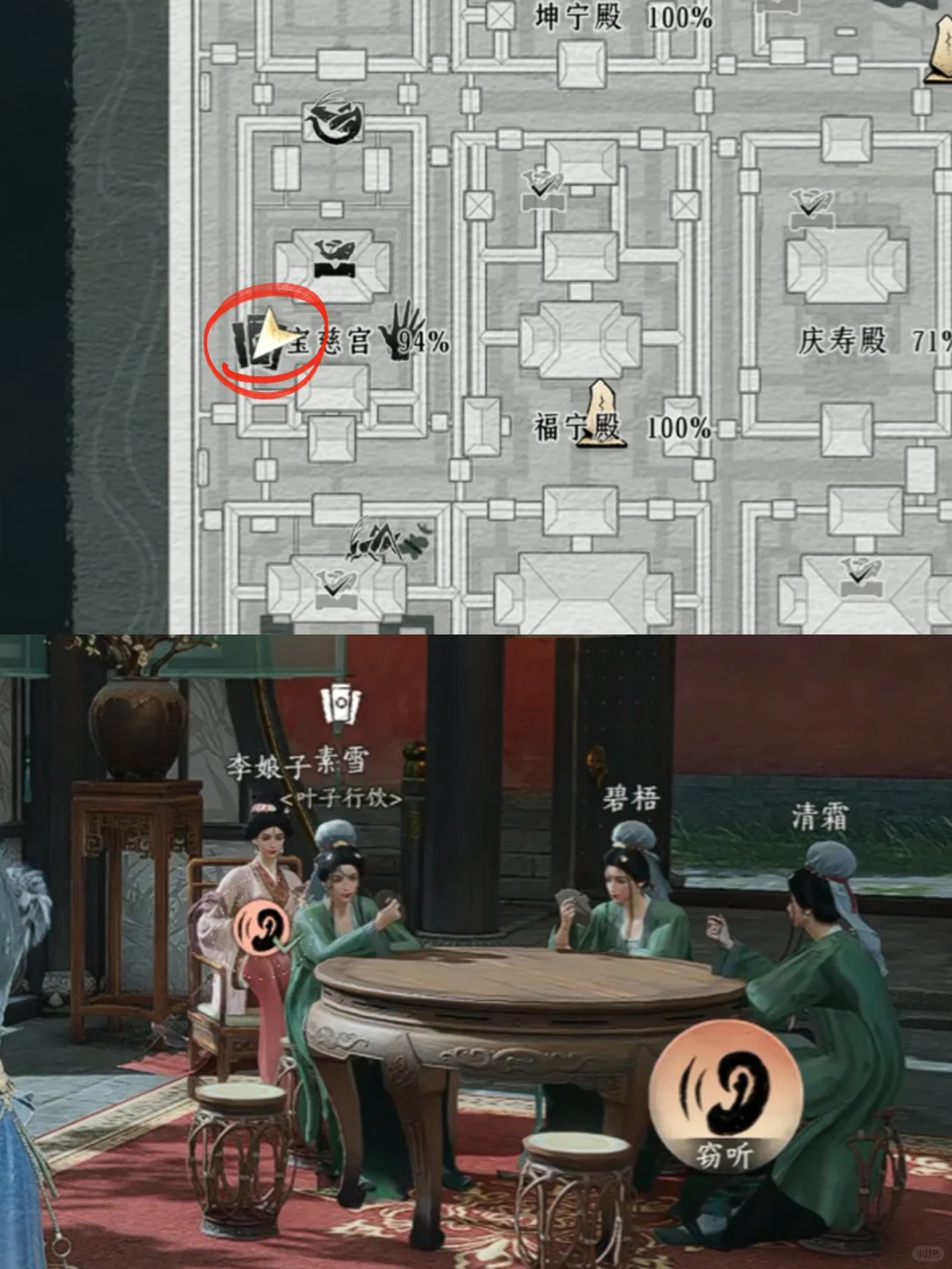 让我听听:听完十个「窃听」那我问你:听任意一个「窃听」前八个都是皇宫•常&午时 后两个是子时