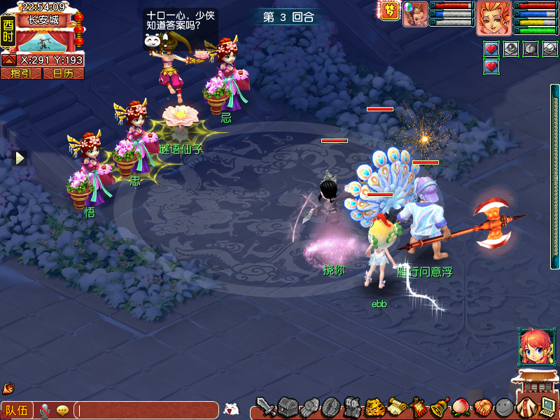 4、谜语仙子(战斗猜怪):进入战斗画面,主怪是芙蓉仙子,小怪是花妖,伤害比较低,需要猜对谜语或者将怪全部击杀。