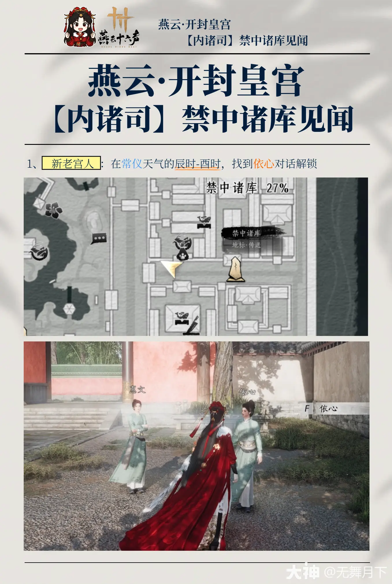 燕云十六声是一款开放世界游戏,玩家可以扮演年轻的侠客在世界游玩,就在最近更新了许多内容,更新了游戏中有许多的收集物品,那么有不少小伙伴好奇开封皇宫见闻在哪,下面就来告诉大家。