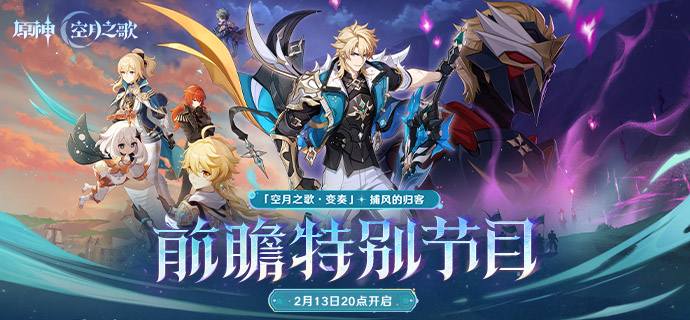《原神》「月之五」版本「空月之歌·变奏」—— 捕风的归客 前瞻特别节目将于2月13日(本周五)20:00正式开启。