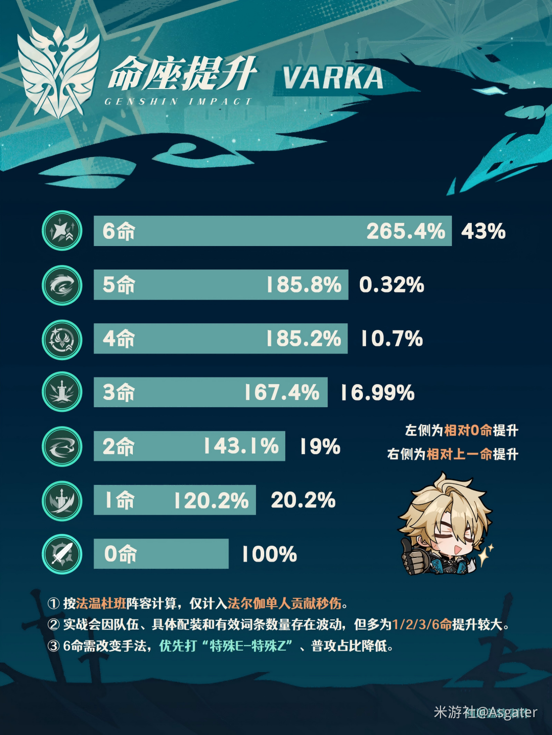 ◆与1命提升相近,提高风伤占比,若不抽6命但想一定程度提高法尔伽的配置,可抽至2、3命(3命也有不错的提升)。