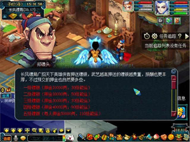 3、战斗中逃跑、死亡会丢失镖银导致任务失败,需找郑镖头取消任务,押金不返还