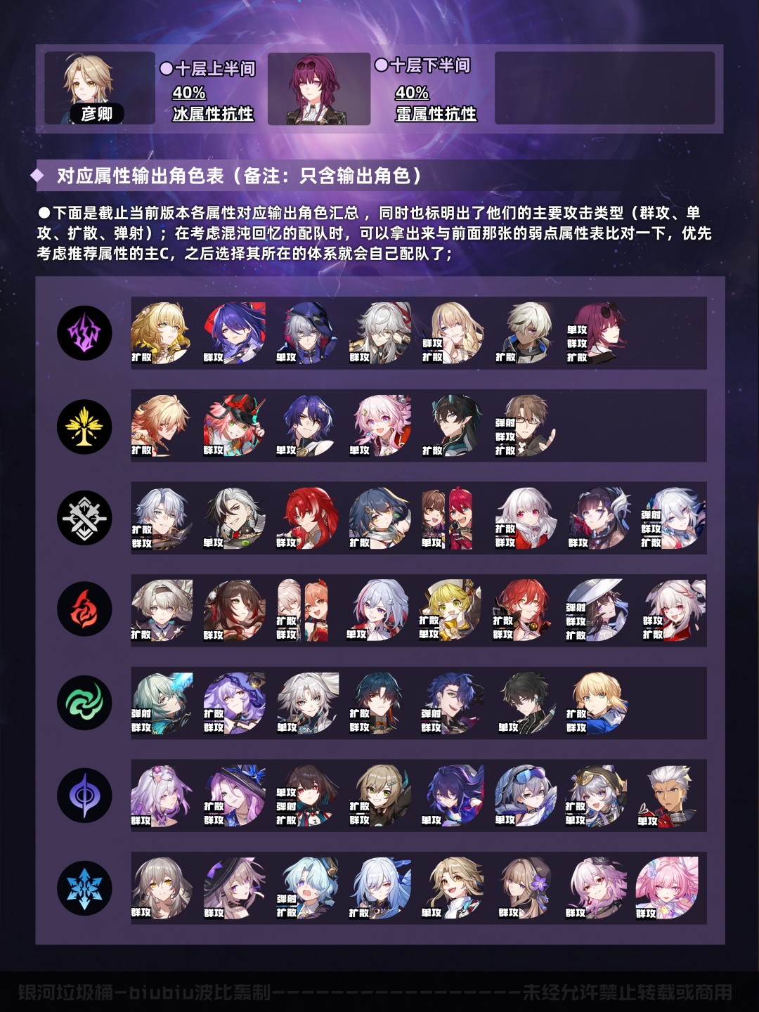 以上是本期的配队推荐速览(五星0+0/1,四星4~6魂,中低练度<遗器主词条正确,副词条>),想尽快了解可进行参考;下面就让我们对本期混沌回忆进行更详细的分析吧;