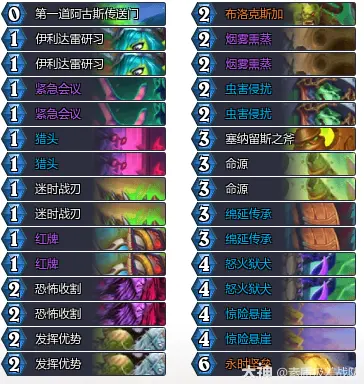 这套卡组传送门不关键,主要是没啥别的好卡可以带了,而且传送门可以污染内战亡语体系,不必急于破门。取胜方式也是很传统的场面膨胀加直伤斩杀。目前对局一般卡组都是5费后发力,4费就打出扎实场面的法术瞎有着不小的节奏优势