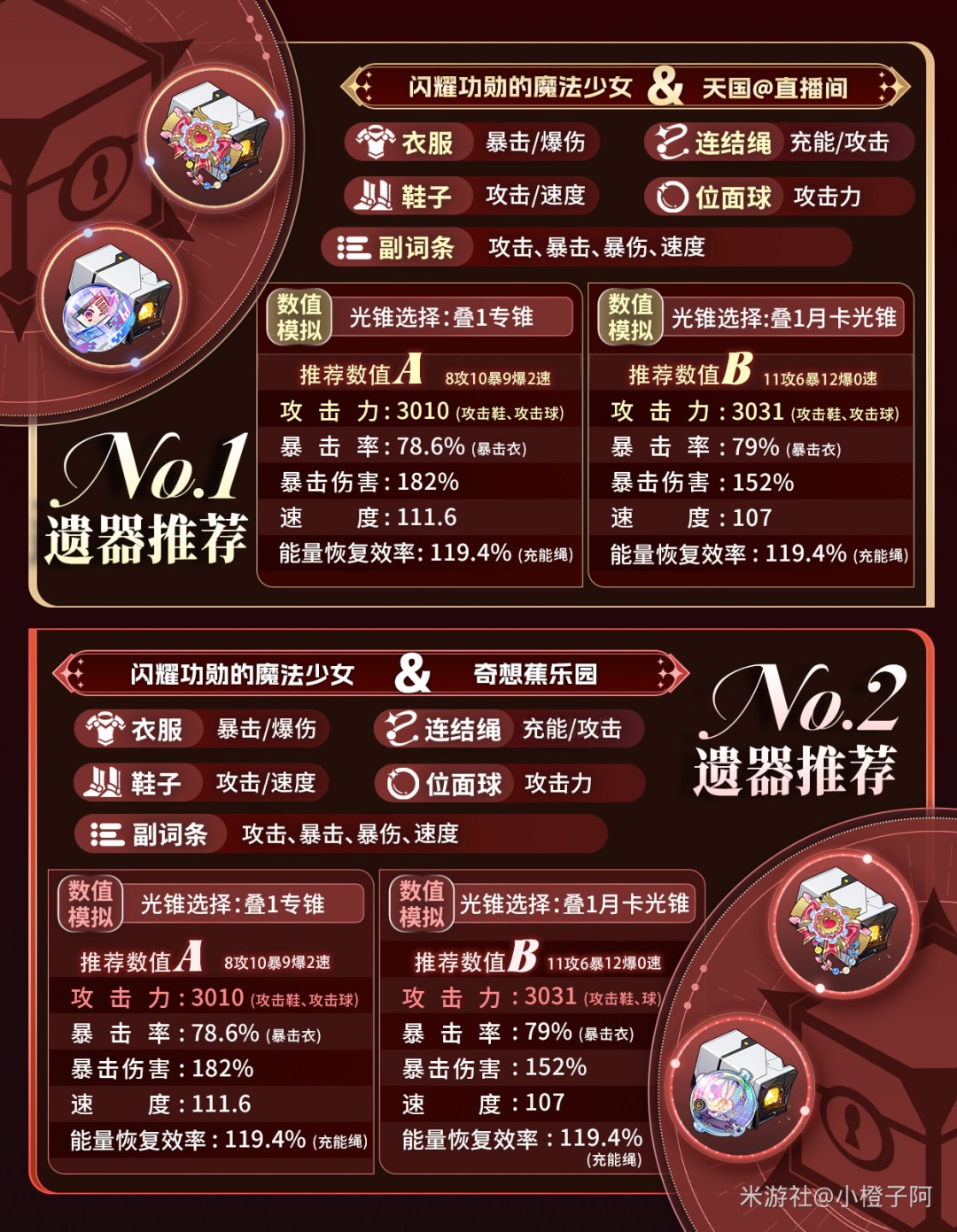 外圈遗器选择方面,首位推荐自然是4.0新上线的【闪耀功勋的魔法少女】4件套。