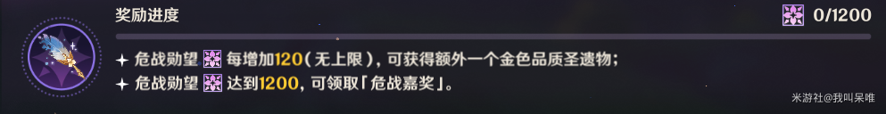 每消耗120树脂,可额外获得1金色圣遗物。
