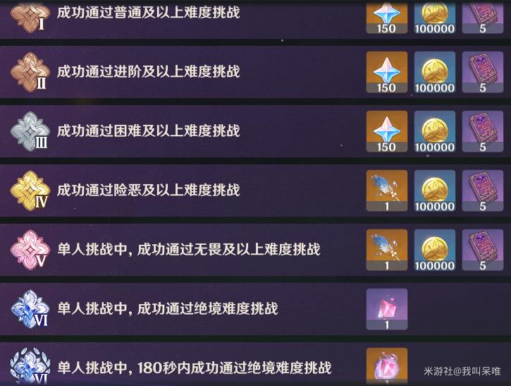 难度1-4可联机挑战,通关后可获得450原石+1启圣之尘等奖励。