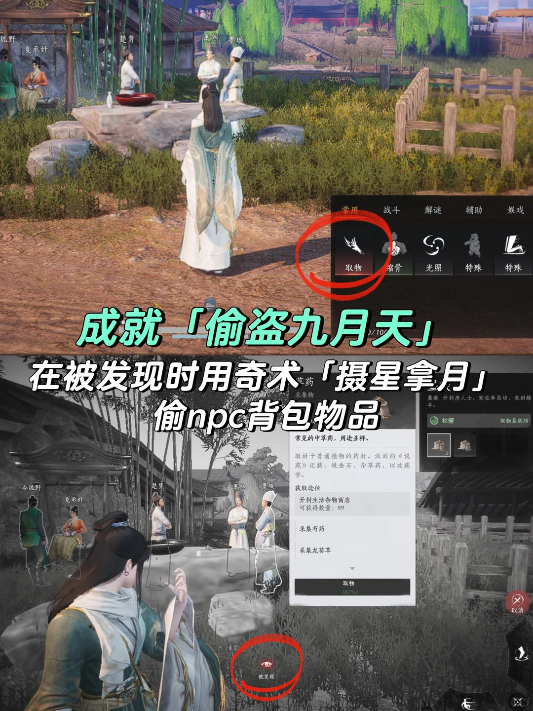 在被发现时用奇术「摄星拿月]偷npс背包物品