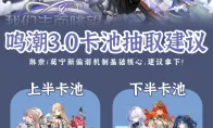 鸣潮3.0版本即将更新,这次2.5版本更新还上线了许多新内容,有新角色,新地图,新宝箱,还有新的成就,那么有不少小伙伴好奇3.0版本怎么抽卡,下面就来告诉大家鸣潮3.0版本抽卡建议。鸣潮3.0版本抽卡建议3.0上半卡池:琳奈+卡提希娅+夏空3.0下半卡池:莫宁