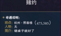 逆水寒赌约奇遇怎么触发,逆水寒中的奇遇任务除了给道具、给技能书之外,也能够给玩家增加BUFF,赌约奇遇就是其中之一,快来看看吧。 奇遇介绍 品级:未知地点:杭州/熙春楼人物:无简介:砸桌子就好了。步骤流程 1.前往杭州熙春楼(475,585),进入熙春楼后玩家