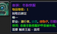 魔兽世界9.0版本带来了很多新的物品,比如物品中有一个消耗品叫做冬脉祭服,那么这个套装消耗品怎么获得?下面就将带来魔兽世界9.0消耗品冬脉祭服获取方法。wow9.0套装冬脉祭服获取方法 套装:冬脉祭服 卖家: 名称 地点 成本 纺鼻(魅夜王庭军需官)炽蓝仙野