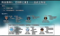 就在最近原神上线了5.7版本,本次版本更新上线了许多新内容,有新剧情,新角色,新武器,还有新的任务,那么有不少小伙伴好奇阵列推想大作战有什么阵容推荐,下面就来告诉大家阵列推想龙武士阵容推荐。原神阵列推想龙武士阵容推荐阵容推荐:【弱群之重】——龙武士阵容 【弱群