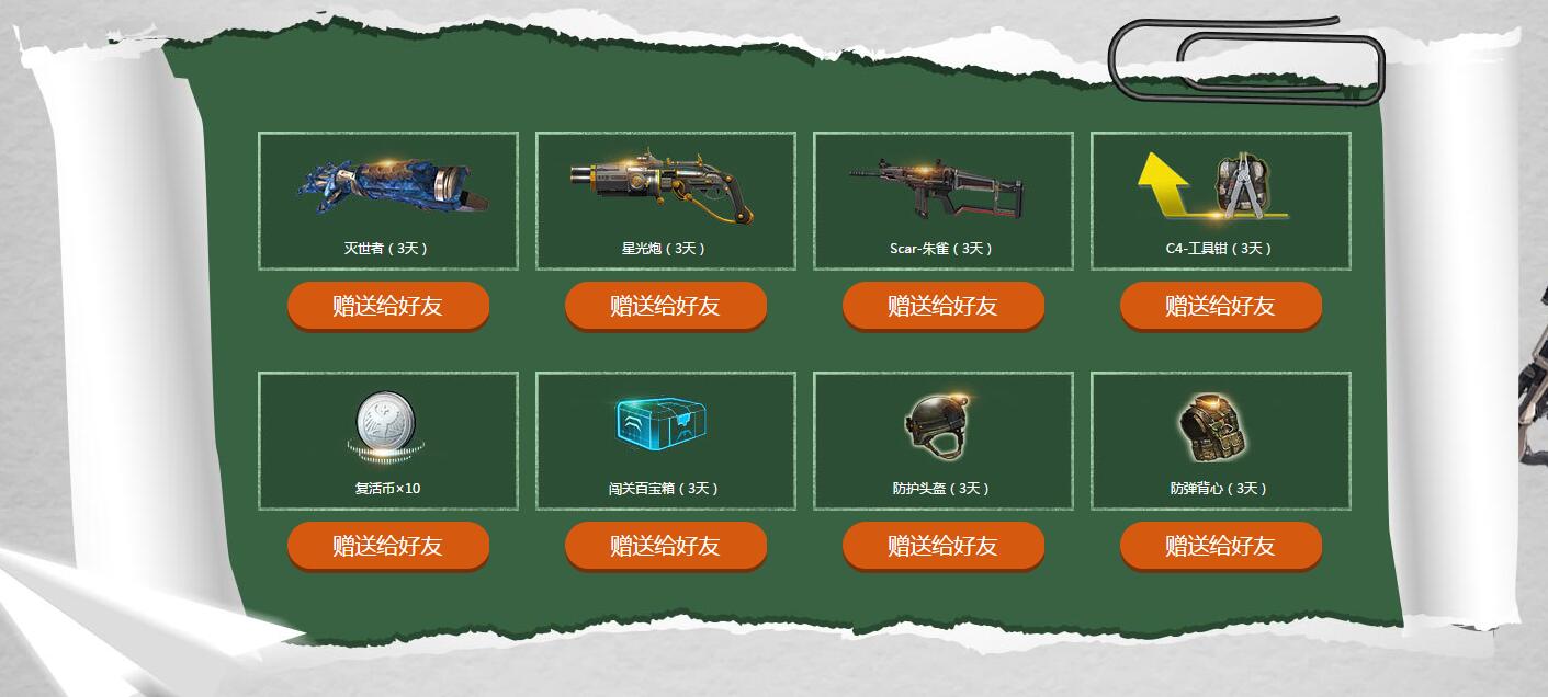 玩家每日登录游戏即可分别给2位好友赠送1个道具。