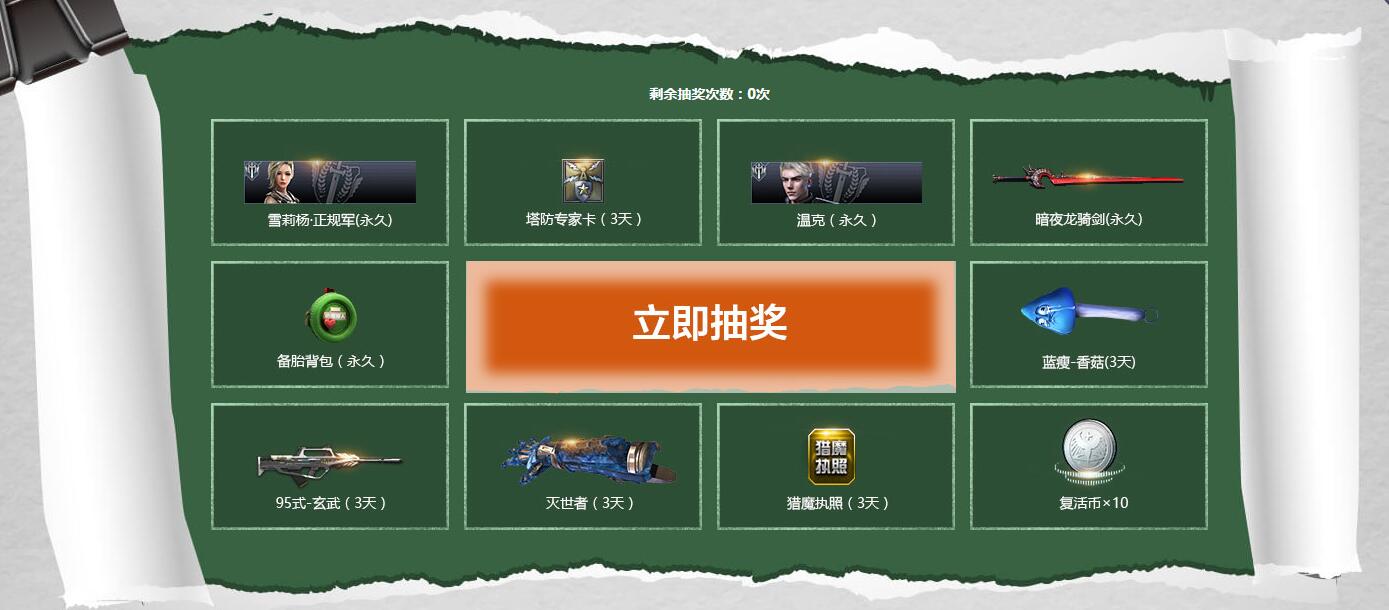 每日完成一局猎场/排位/塔防即可获得1次抽奖机会。每日最多抽奖3次,抽奖机会每日清空。