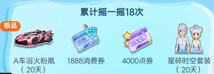 活动期间每日登录掌上飞车、每日将活动分享给好友,可获得一次摇一摇的机会!(每日最多有两次)