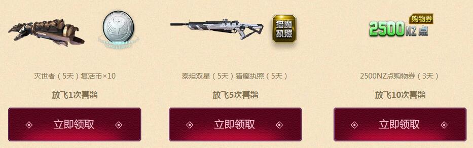 1、放飞喜鹊机会每日清空,请当日使用。第一部分为全员放飞喜鹊进度,当全员放飞进度达到100%(放飞1000万喜鹊),即可领取永久专属双持UZI;