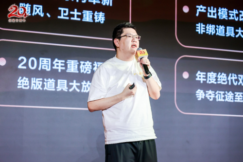 回望过去,放眼现在,征途也将继续展望未来。在主持人介绍下,征途IP赛道负责人赵剑枫上台,为大家带来了以“尊重玩家,全面改革,再战20年”为主题的征途20周年发布会。发布会上,赵剑枫与玩家们分享了二十载征途,专属于征途人的青春记忆,小到一张合影,大到一场国战都历历在目。