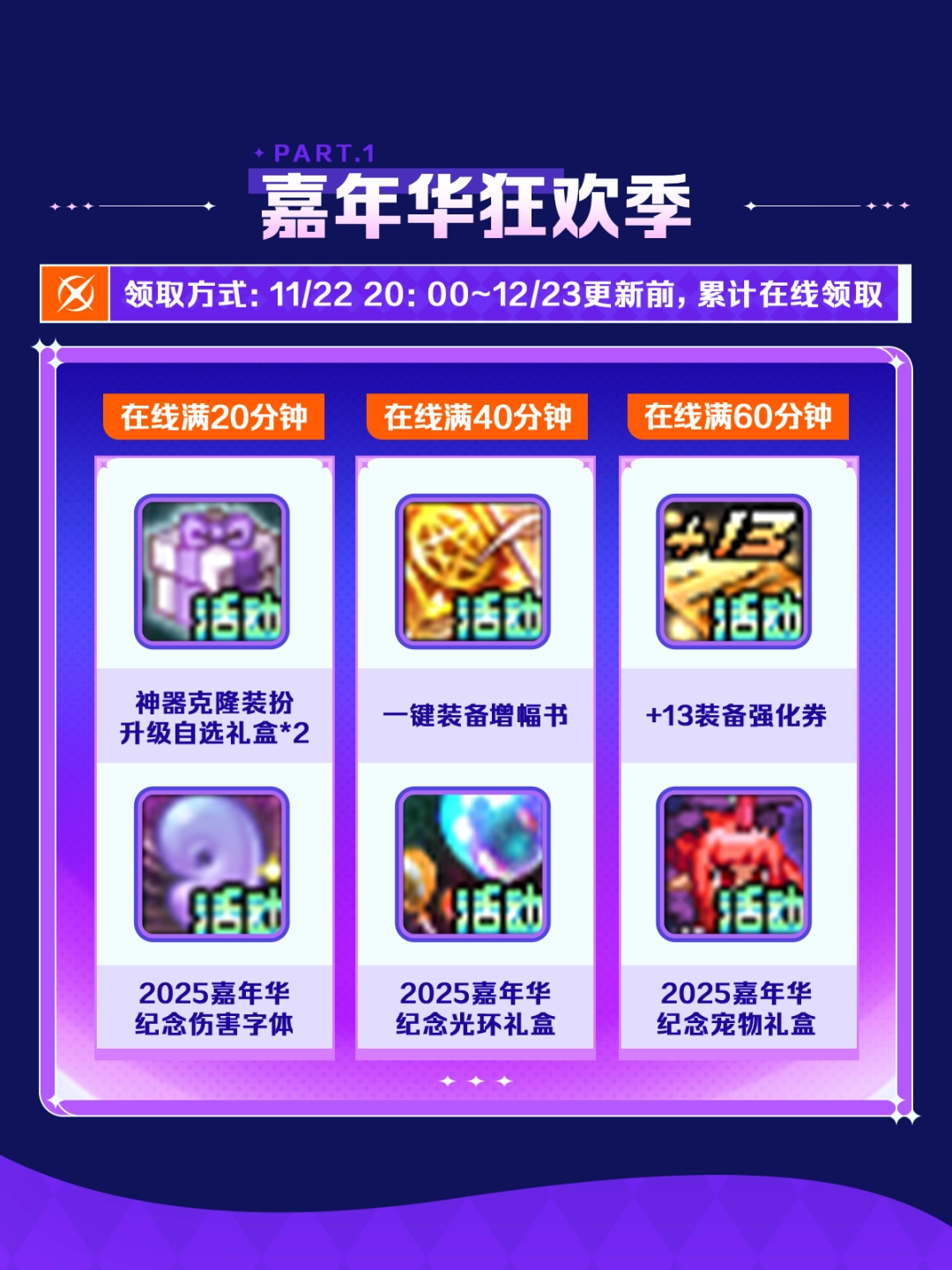您的位置:网游 > 厂商新闻 > DNF嘉年华狂欢季一大波福利来袭!!+13强化券等奖励累积在线即领~
