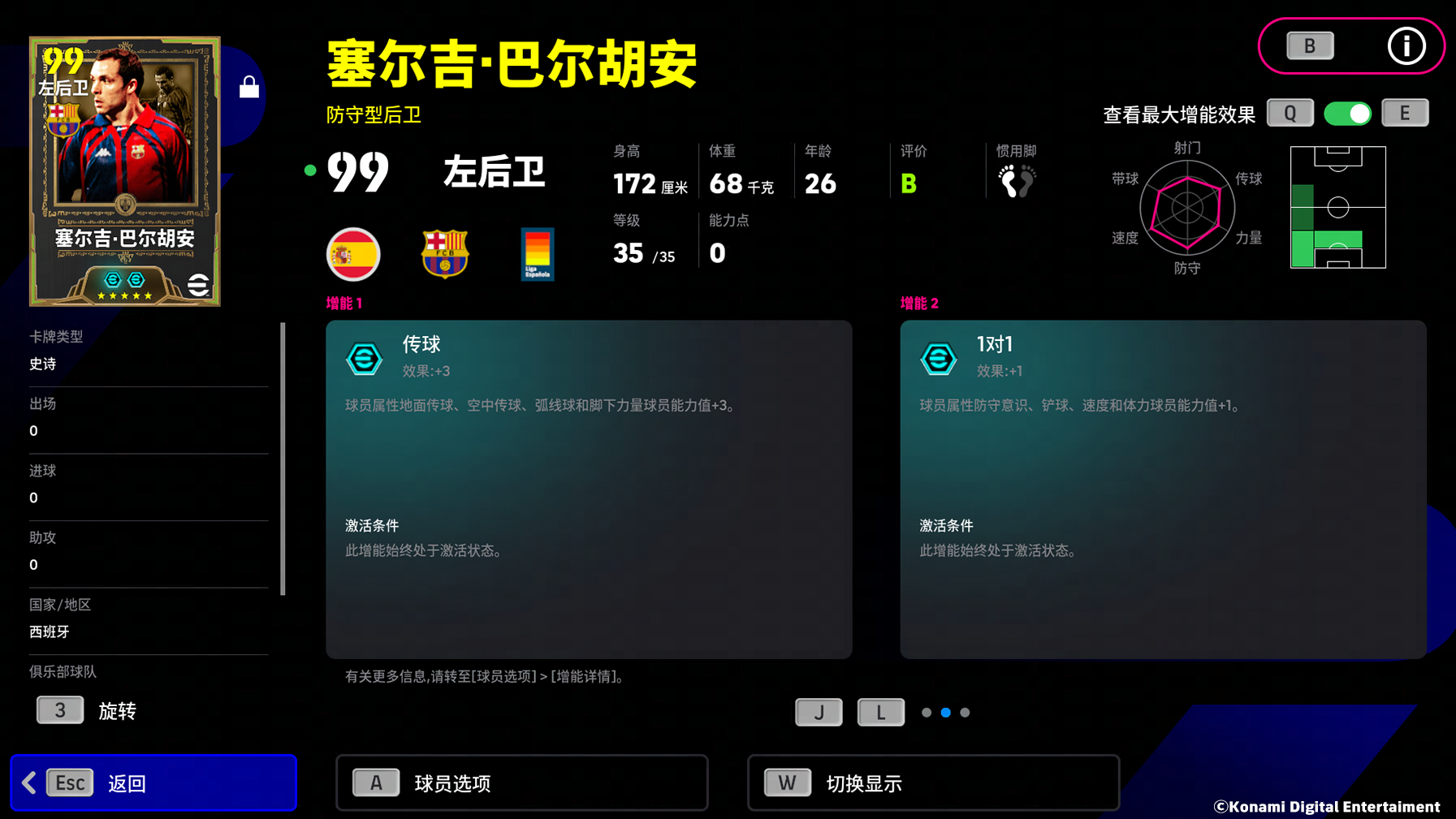 *增能后球员总评可达103分,上阵最大总评可达107分