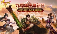 感谢有你,陪伴我们一起走过九周年!《传奇归来》九周年庆典新区8月24日14点火爆开放。我们仍将采用玩家最喜爱的三职业版本,并进行了全新改版,为大家带来全新的激情!新区将采用经典三职业,打怪升级模式,活力值、精力值让你升级更轻松。装备、技能书、书页全部打怪爆,高