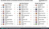 近日,Sensor Tower发布了最新报告,带来了2020年11月全球热门移动游戏收入榜单。报告指出,2020年11月腾讯《王者荣耀》在全球App Store和Google Play吸金2.3亿美元,较2019年11月增长62.5%,位列全球手游畅销榜榜首。