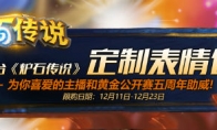 2014年,《炉石传说》黄金公开赛从上海启航,截止到目前,已经迎来了第五个年头。为了庆祝黄金公开赛五周年,网易暴雪联合斗鱼、虎牙、熊猫、战旗、网易CC平台推出了一系列加油助威表情包,玩家可以通过平台进行购买,为自己喜欢的比赛和选手加油助威。同时,所有购买了表