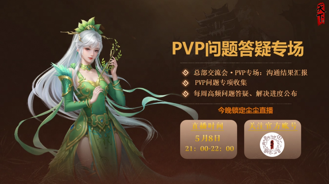 少侠们好呀~五一假期结束,天下贰玩家服务月正式到来!之前给大家宣传已久的玩家交流会正在进行中,相信少侠们都十分关注交流会的内容~这不,策划【尘尘】在官方直播间就给大家分享了PVP专场交流会的会议纪要,以及整理了本周的玩家反馈并进行答疑。 没有观看直播的少侠,不