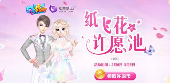 《QQ炫舞》梦工厂为大家准备了一场纸飞花蝴蝶盛宴。活动期间到活动页面许愿,梦工厂“蝶满芳芳”专属套装就是你的!那么如何获得许愿币呢?下面跟着小编一起来看看吧。 纸飞花许愿池 活动时间:2月6日-3月5日活动地址:点此进入 一、看直播得许愿币 在活动期间,每日使