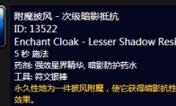 《魔兽世界》怀旧服附魔披风次级暗影抵抗介绍