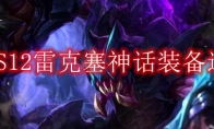 LOLS12雷克塞神话装备选择:神话装备选择挺进破坏者或者暗行者之爪,装备合成比较平滑,装备属性很契合,暗行者之爪的carry能力更加强势一点,配合雷克塞抓人效率更高,挺进破坏者相比于爪子,有一定的生命值和攻击速度,在刷野/容错率方面比爪子高一些。挺进的主动效果还有AOE减速效果,神话首选装备。